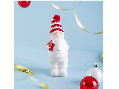 Пусть ваш дом наполнится теплом, волшебством и предвкушением чуда — с этим очаровательным Дедом Морозом из белоснежного фарфора! Он словно только что вышел из зимнего леса, чтобы принести вам подарок: в мягкой полосатой шапке с пушистым помпоном, с добрым взглядом и красной звездой в руках — он готов стать центром вашего новогоднего декора или милым акцентом на полке, камине или рабочем столе.