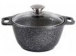 Кастрюля 2,0л со стеклянной крышкой, АП (темный мрамор), Материал : Литой алюминий с антипригарным покрытием. Линия ''Мраморная'' - литая толстостенная посуда с 5-слойным мраморным антипригарным покрытием нового поколения, усиленным минеральными керамическими частицами, фирмы ''Weilburger Coatings GmbH'' ''Greblon-non-stick С2+''(Германия). Толстостенное литое основание до 6 мм, исключающее деформацию посуды.Высокая износостойкость, возможность приготовления вкусной и здоровой пищи без добавления масла, как на раскаленных камнях. Пища не пригорает, посуда легко моется. Долгий срок службы. Проточка дна. Возможность использования на всех типах плит,кроме индукционных.Термостойкая крышка. Высокоэффективное распределение тепла.